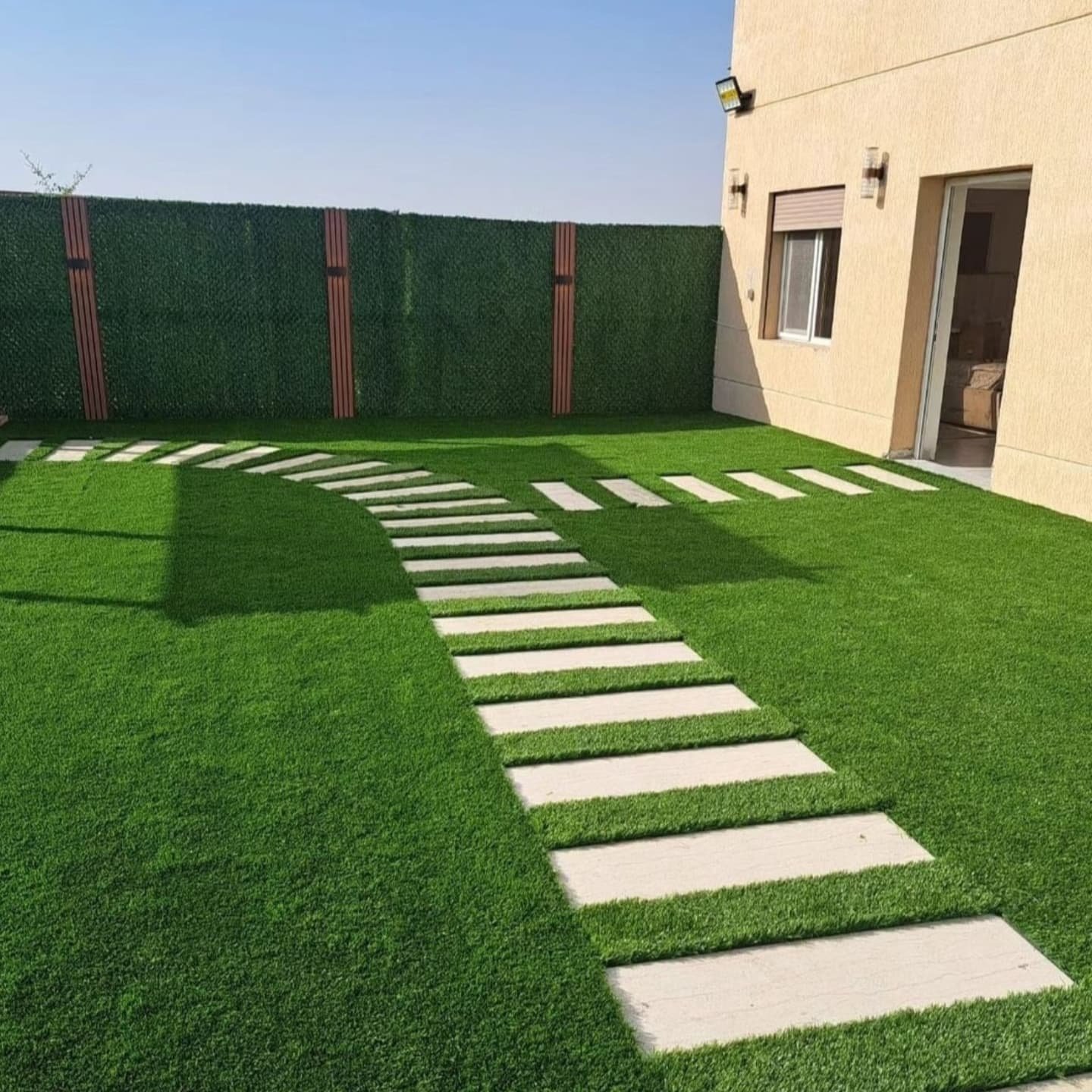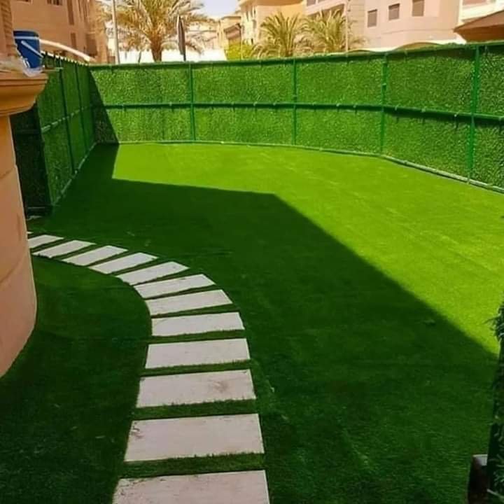 "أعمال تنسيق حدائق وتركيب ثيل صناعي داخل الكويت لتجميل المساحات الخارجية."